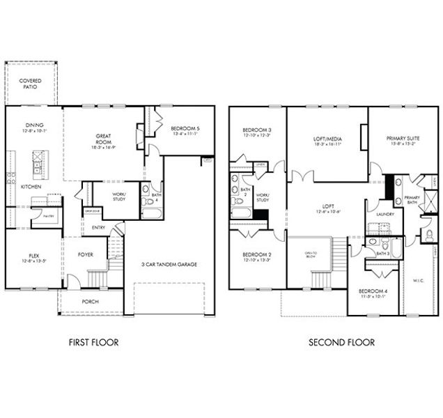 The three-car tandem garage boasts ample storage space. Upstairs, the primary suite includes an impressive walk-in closet and luxurious bath. White cabinets with white quartz countertops, EVP flooring, and carpet in our Essence Package.