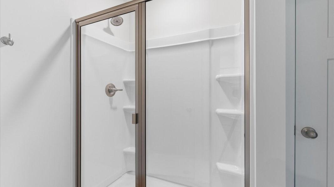 The roomy primary suite boasts an expansive walk-in closet and a primary bathroom with a dual vanity and glass enclosed walk-in shower.
