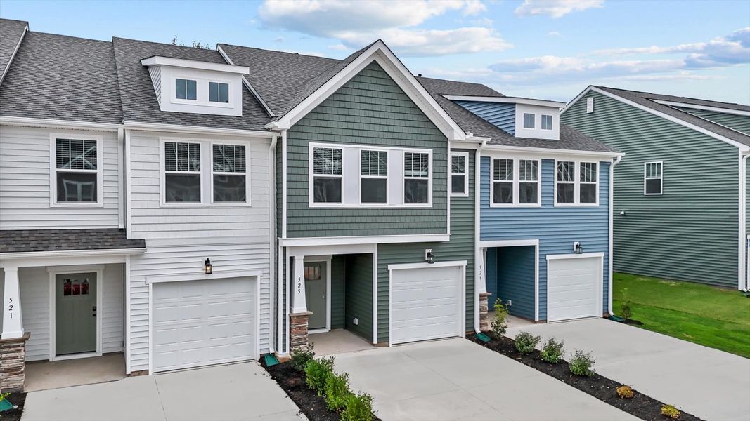 Spacious open concept kitchen with a 9 foot centered island sits adjacent to the airy family room and breakfast room. The second level living includes three bedrooms, two full bathrooms and the laundry room. The roomy primary suite boasts a spacious closet and a primary bathroom with a dual vanity. Home includes 1 car garage with 2 car parking pad.