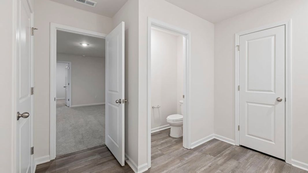 The primary suite features a peaceful retreat with a walk-in closet and an en suite bathroom featuring dual vanities. The three additional bedrooms provide ample space and privacy, sharing a secondary bathroom. Upstairs features a versatile loft space. Additional features include a laundry room, ample storage closets, and large windows that fill the home with natural light.