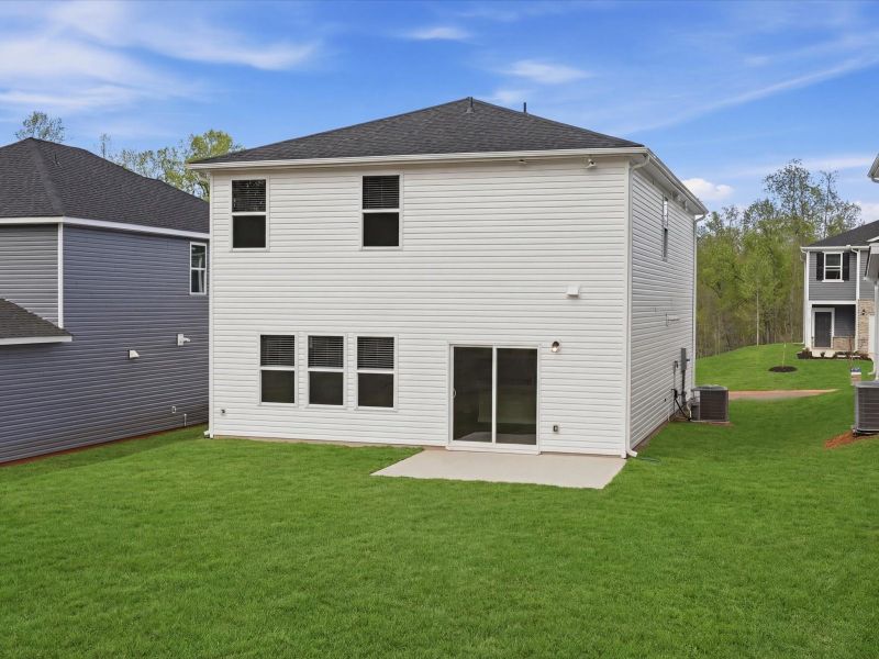 Kick your feet up after a long day on the back patio. Inside, the kitchen island overlooks the open-concept great room. White cabinet with white quartz countertops, EVP flooring, and carpet in our Radiant Package.