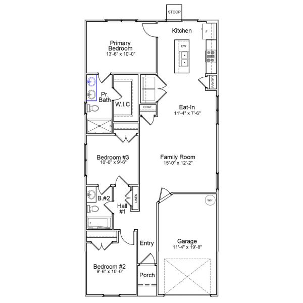 This one-story Baker floor plan features three bedrooms, two bathrooms, and a one-car garage. Upon entry, you will notice two bedrooms and a shared bathroom on your left. The great room flows seamlessly into the eat-in and kitchen. The primary suite is located away from the kitchen and has a private bathroom with double sinks, a shower, and a walk-in closet.