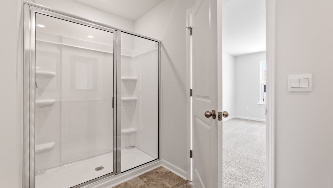 A conveniently located half bathroom is situated off the living room. Moving upstairs, you’ll find two bedrooms, which share a bathroom complete with a single vanity and tub. The upstairs laundry room is also ideally located for easy access. On the opposite side of the floor, the primary bedroom features privacy and comfort. The en-suite primary bathroom boasts a double vanity and a walk-in shower with glass panels. The spacious walk-in closet is perfect for additional storage.