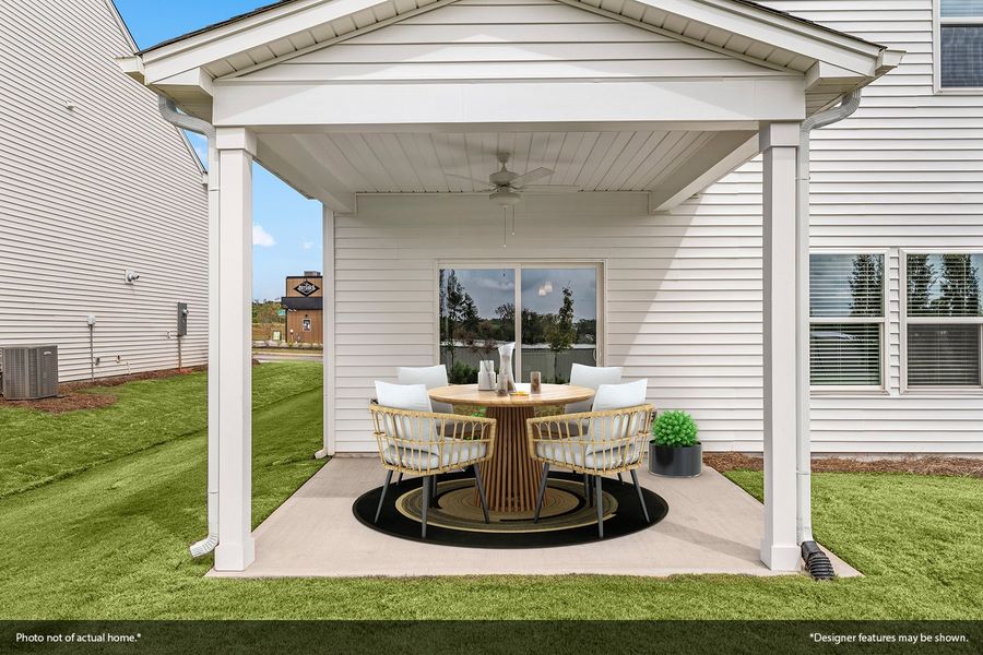 This thoughtfully designed two-story home invites you to settle in and stay awhile. From the moment you walk through the front door, you’re welcomed into a bright dining space that flows effortlessly into the kitchen and great room—perfect for slow morning coffee, weeknight dinners, or hosting friends on the weekend. Crown molding, durable luxury vinyl plank flooring, and open wood spindle railings leading upstairs add warmth and character throughout the main level. A convenient half bath and rear covered patio make everyday living easy—imagine grilling out back or unwinding outdoors at the end of the day. The spacious two-car garage offers plenty of room for vehicles, storage, or even a small workshop setup—keeping your home organized and clutter-free. Upstairs, the centrally located laundry room is right where you need it—just steps from the bedrooms and loft, making busy routines feel more manageable. The primary suite offers a peaceful escape with a spacious walk-in closet and a private bath featuring dual sinks and a walk-in shower. Two additional bedrooms and a full hall bath provide comfortable, flexible space for loved ones, guests, or even a dedicated home office. Designed for real life, this home combines comfort, style, and functionality in a way that truly feels like home.
