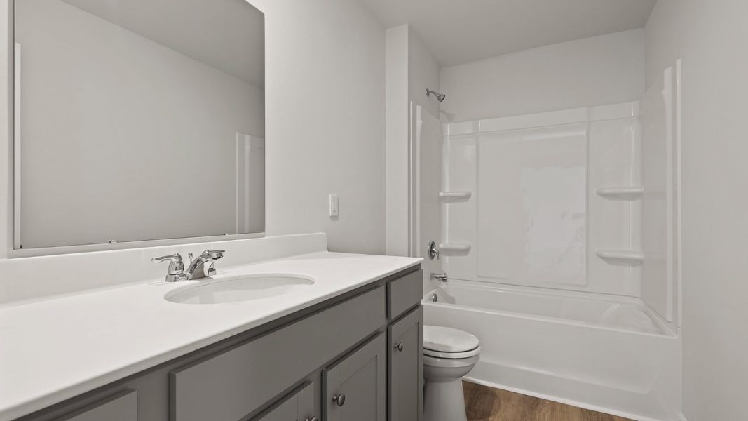 This home features the Pennwell floor plan, known for its spacious and thoughtfully designed layout. The main level offers an open-concept design that seamlessly connects the kitchen and living areas, creating an ideal space for everyday living and entertaining. The kitchen features a large center island and flows naturally into the living room, where oversized windows and sliding doors bring in abundant natural light. Just off the front entry, a dedicated dining space provides a comfortable setting for meals and gatherings. Upstairs, you’ll find all four bedrooms, offering privacy and functionality. The spacious primary suite includes a double vanity and a walk-in shower, creating a relaxing retreat. Three additional guest bedrooms offer ample space for visitors, or a home office and share a full bathroom with a tub.