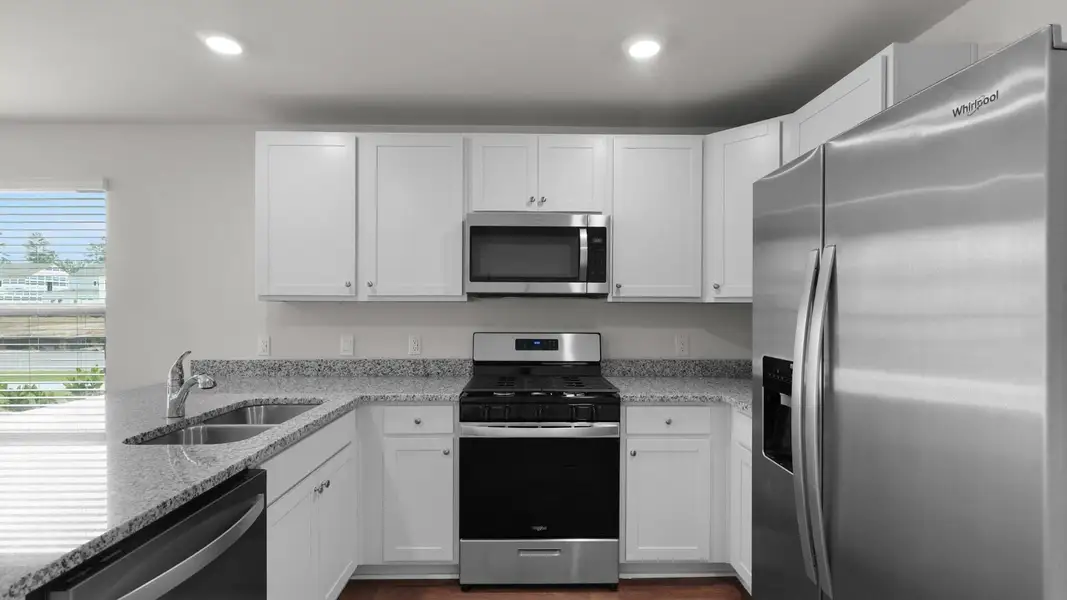 This townhome features The Norman floor plan with 1,763 square feet of two-story living. The first floor includes a private bedroom with an en suite bath and double vanity--ideal for guests or a home office. Upstairs, you'll find three additional bedrooms along with a versatile loft area that can be used as a second living space, playroom, or workspace. The home also includes 2.5 baths, granite countertops, stainless steel appliances, and durable luxury vinyl flooring in the main living areas.