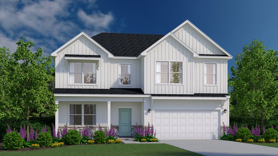 The Riviera floor plan offers a bright, open layout designed for comfortable family living and effortless entertaining. The first floor welcomes you with a spacious dining room that flows into a modern kitchen featuring a large island, walk-in pantry, and direct access to the expansive family room. Sliding doors lead to a covered patio, creating a seamless connection between indoor and outdoor living spaces. Upstairs, the luxurious owner’s suite serves as a private retreat with a beautifully appointed bath and dual walk-in closets. Three additional bedrooms, each with ample closet space, share a full bath and are conveniently located near the laundry room for added ease. With a two-car garage, thoughtful storage, and flexible spaces throughout, the Riviera combines modern design with everyday practicality—making it a perfect place to call home.