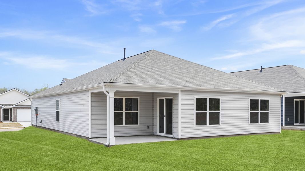 Check out 133 Cade Cove Drive, one of our stunning new homes in Bentley Park. This home is thoughtfully designed with modern living in mind and features a spacious, single-story layout with three bedrooms, two bathrooms, and a two-car garage. When you step inside, you’ll immediately notice the open-concept living space that combines the living room, dining area, and kitchen. The kitchen features stainless steel appliances, a generous pantry, and a large island with a breakfast bar, making it an ideal spot for meal prep or casual meals. The large primary bedroom is a true retreat, complete with a walk-in closet and a luxurious en suite bathroom. The dual vanities, and spacious shower create a spa-like atmosphere, perfect for relaxing after a long day. On the opposite end of the home, you’ll find two additional bedrooms and a secondary bathroom, featuring privacy and convenience. At the rear of the home, a covered porch provides a great space for enjoying the outdoors or hosting gatherings. Whether you’re looking to unwind or entertain, this home has something for everyone. Pictures are representative.
