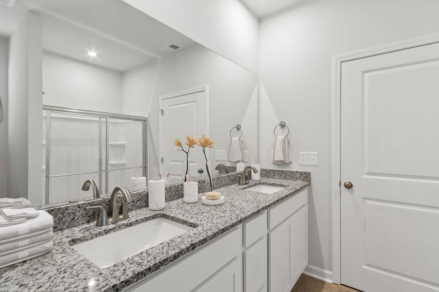 Retreat to the primary bedroom oasis, a tranquil haven complete with a generous walk-in closet and a luxurious bathroom featuring dual sinks and a stylish shower. This thoughtfully designed layout prioritizes comfort and convenience, ensuring that you have a personal sanctuary to unwind after a busy day. With 2,505 square feet of living space, this home is tailored for modern living, showcasing designer-inspired finishes that elevate everyday life.