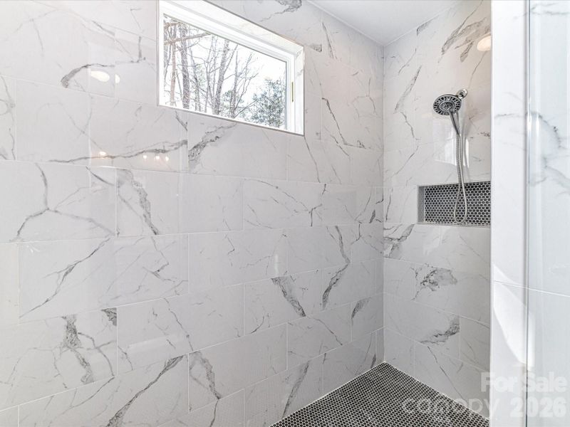 The primary suite offers a private retreat, highlighted by a custom barn door entry and a spa-like bath featuring a huge walk-in tiled shower. Secondary bedrooms provide flexibility for guests, family, or a home office.