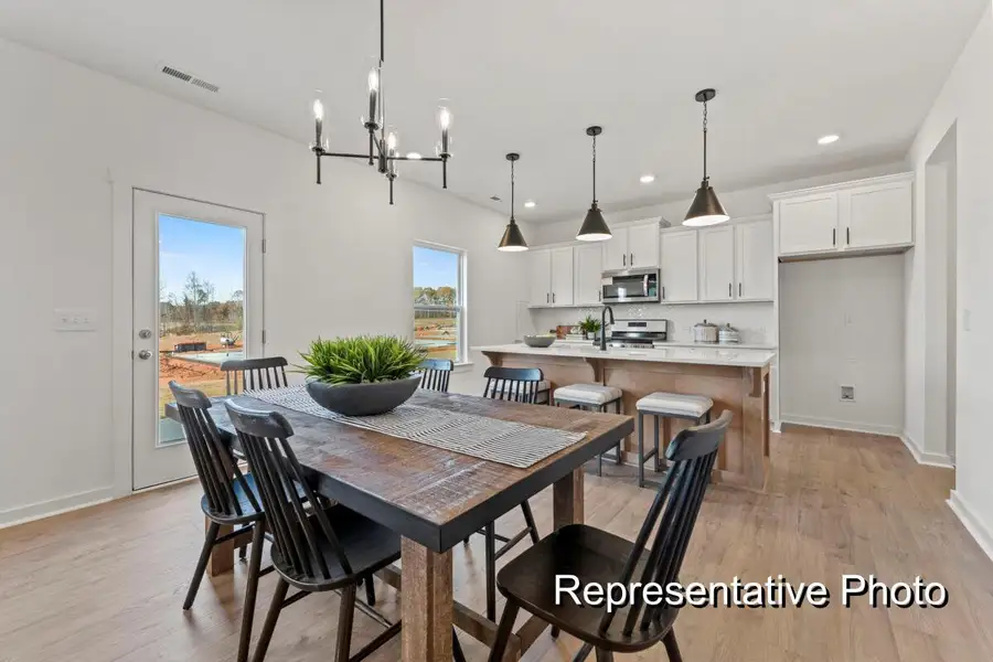 Build your semi-custom Whitney, with approximately 2,300 sq ft, 5 bedrooms, and 3 bathrooms & flexible living spaces. The main level features a secondary bedroom suite, along with an open-concept Dining Area, Kitchen, and Great Room, plus a built-in pantry and convenient drop zone at the garage entry. Upstairs, a spacious Loft provides additional space. The Primary Suite includes a private bath and walk-in closet, while additional bedrooms, a full bath, laundry room, and storage closet complete the second floor. Personalize finishes and structural options to create a semi-custom home tailored to your lifestyle. Located in Reeves Crossing, this home offers convenient access to nearby shopping, dining, and regional connections, along with available homeownership programs for qualified buyers