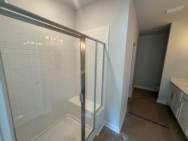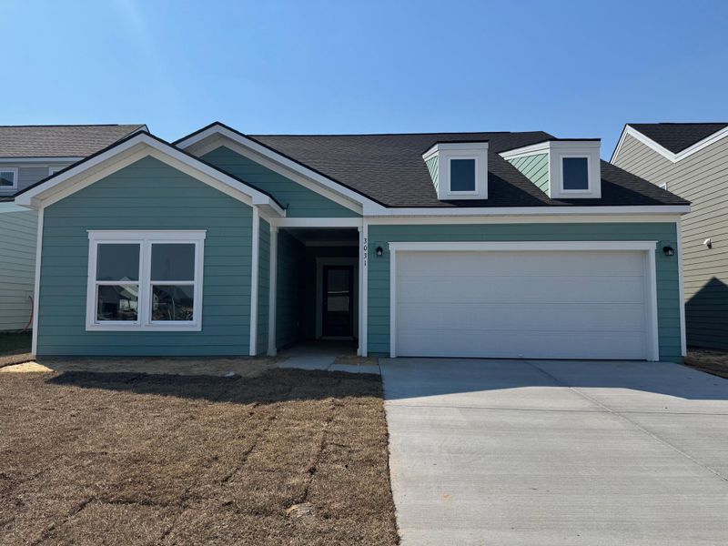 Welcome to The McKinley at Tea Farm by Ashton Woods. in Ravenel's newest community. The open one story layout features upgraded white cabinetry, quartz counters, stainless-steel appliances, designer lighting, and luxury vinyl plank flooring. The kitchen, dining area, and family room open to a huge covered back porch. The back faces West an there will be some amazing sunsets. The owner's suite includes a walk-in closet and tiled shower, with two additional bedrooms and a half bath for added flexibility. Estimated completion is April, 2026.