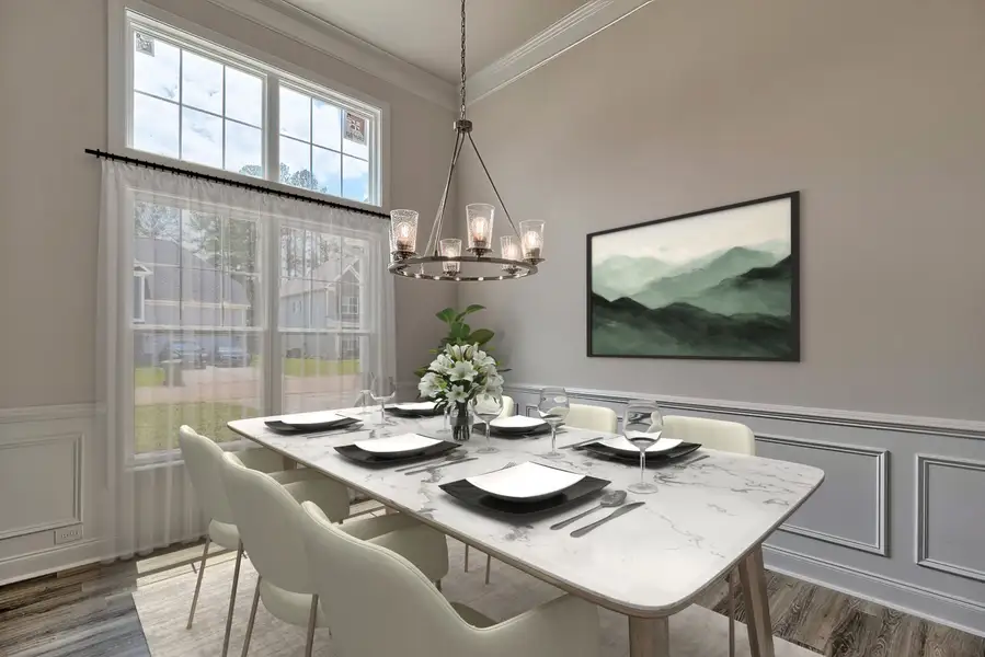 The Ransford floor plan is designed to fulfill your grandest dreams of homeownership. Spanning an impressive 2,965 square feet, this single-family residence features four spacious bedrooms and three full bathrooms, offering ample space for family living. The heart of the home is the expansive family room, which boasts an optional coffered ceiling, creating an inviting atmosphere for relaxation and entertainment. The primary suite is a true retreat, stretching from the front to the back of the house, and includes a luxurious bathroom and a walk-in closet that will leave you in awe.