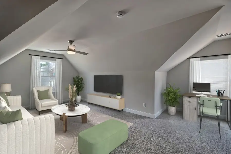 On the opposite side of the home, the second and third bedrooms are thoughtfully separated by a full bathroom, providing privacy for family members or guests. The conveniently located laundry room makes daily chores a breeze. Venture upstairs to discover a fourth bedroom and a generous loft area, perfect for a media room or a quiet study. With its elegant design and functional layout, the Ransford is a home you will always be proud to call your own. Don't miss this opportunity to embrace a lifestyle of comfort and convenience in Timberline Meadows. Contact us today to schedule your appointment!