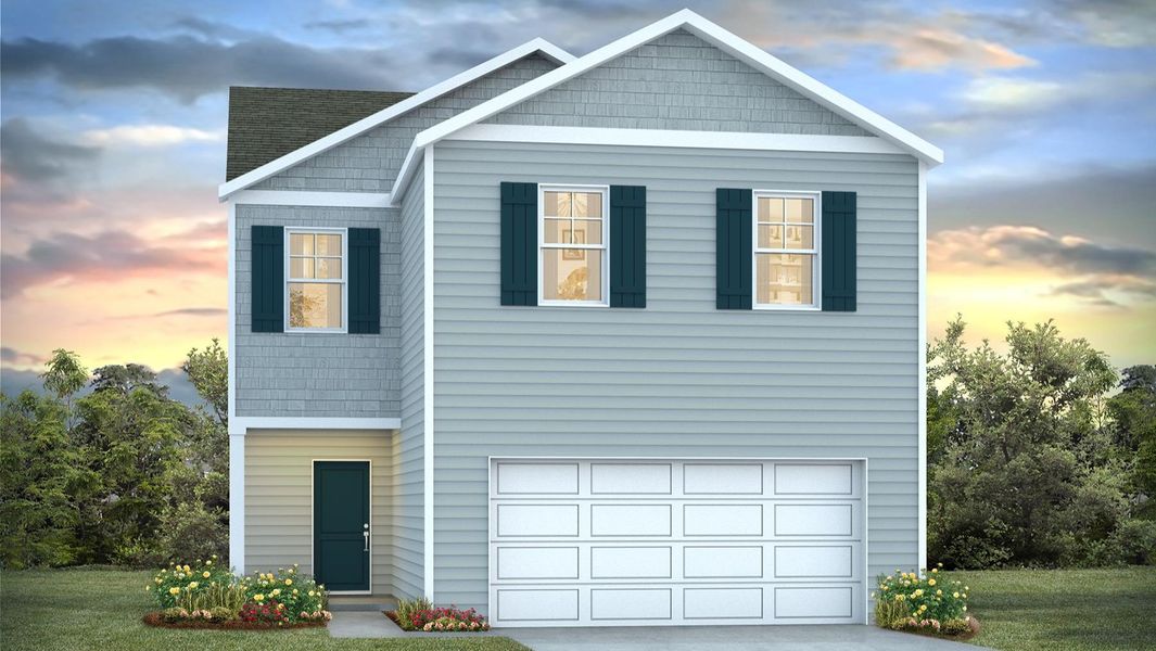 Find yourself at home in the Aisle floorplan in Sease's Pond! The Aisle at 213 Ruby Prince Road comes finished with a soft mist-colored Hardie Plank exterior and navy-blue accents from the doors and shutters. This home features 4 bedrooms, 2.5 bathrooms, modern features, and nearly 2,000 sqft. of living space. It sits on a peaceful, roomy homesite near the back of the quaint community of Sease's Pond.