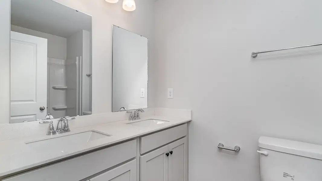 Our Kyle plan is a well appointed two-story home with a picturesque front porch and open concept living, dining, and kitchen that is perfect for entertaining. The primary bedroom suite features an impressive walk-in closet and private bath with double vanity and large shower. All three additional bedrooms are spacious and the laundry room is conveniently located on the second floor, as well.