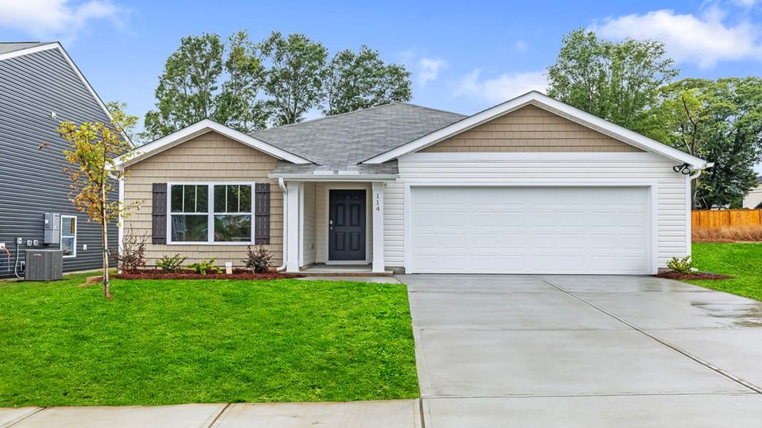 Check out 127 Cades Cove Drive, one of our stunning new homes in Bentley Park. This home is thoughtfully designed with modern living in mind and features a spacious, single-story layout with three bedrooms, two bathrooms, and a two-car garage. When you step inside, you’ll immediately notice the open-concept living space that combines the living room, dining area, and kitchen. The kitchen features stainless steel appliances, a generous pantry, and a large island with a breakfast bar, making it an ideal spot for meal prep or casual meals. The large primary bedroom is a true retreat, complete with a walk-in closet and a luxurious en suite bathroom. The dual vanities, and spacious shower create a spa-like atmosphere, perfect for relaxing after a long day. On the opposite end of the home, you’ll find two additional bedrooms and a secondary bathroom, featuring privacy and convenience. Pictures are representative. At the rear of the home, a covered porch provides a great space for enjoying the outdoors or hosting gatherings. Whether you’re looking to unwind or entertain, this home has something for everyone. Pictures are representative.