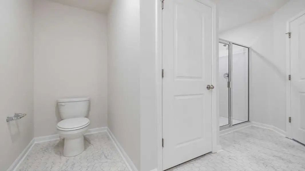 A conveniently located half bathroom is situated off the living room. Moving upstairs, you’ll find two bedrooms, which share a bathroom complete with a vanity and tub. The upstairs laundry room is also ideally located for easy access. On the opposite side of the floor, the primary bedroom features privacy and comfort. The en-suite primary bathroom boasts a double vanity and a walk-in shower with glass panels. The spacious walk-in closet is bathed in natural light, thanks to a window that brightens the space.