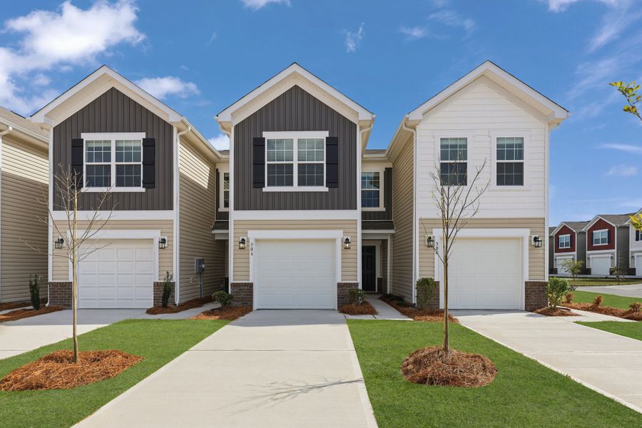 The first floor of this new two-story townhome is host to an inviting open-concept layout that combines the kitchen with the living and dining areas. Upstairs are three bedrooms, including the luxe owner’s suite, complete with an en-suite bathroom and walk-in closet.
