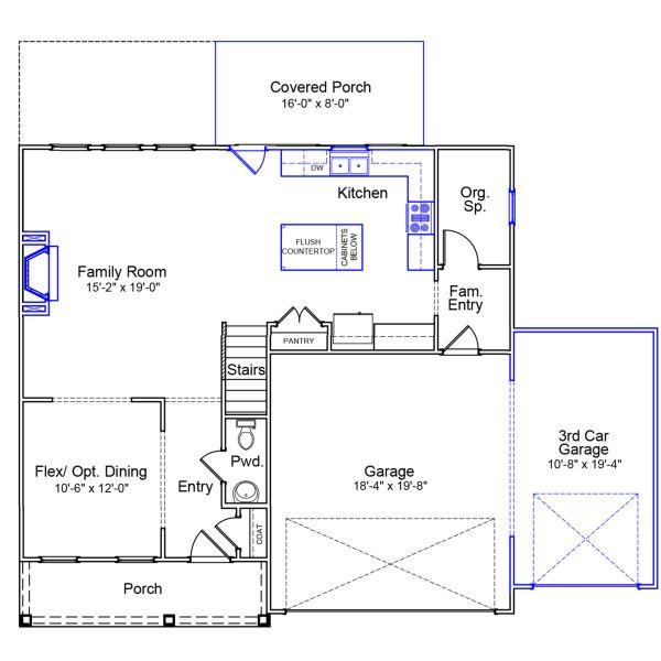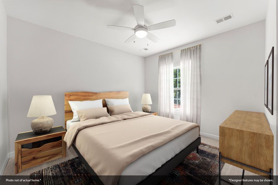 The two-story Cooper plan features four bedrooms and two-and-one-half bathrooms. Enter through the front door to be greeted by flex space/Dining area which opens to an open great room, eat-in, and kitchen. The great room offers gas fireplace and access to a large rear covered porch. Large front porch perfect for rocking chair relaxing. there is an organizational space just off the garage entry. A powder room completes the first floor. A loft space, the primary suite, and three secondary bedrooms with walk-in closets can all be found on the second floor. The laundry is also on the second floor. The primary suite has walk in shower, linen closet and large walk-in closet. The loft offers additional living space upstairs. Relax outside on your large rear covered porch or the extended front porch.