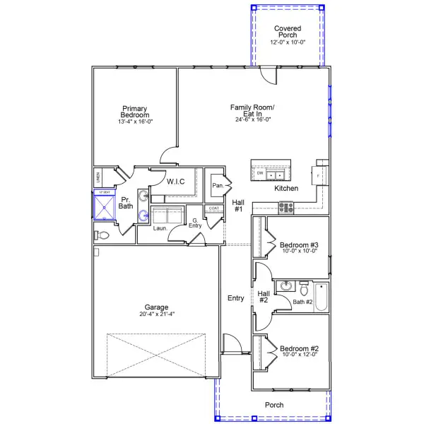 The Cary plan is a one-story home with three bedrooms and two bathrooms. The kitchen features a spacious pantry and an island with overhang and is open to the great room and eat-in area. The primary suite sits off of the great room. The primary bathroom includes a linen closet, water closet, and walk-in closet. Two secondary bedrooms are located at the front of the home and share a bathroom. Enjoy outdoor living on the rear covered porch and rocking chair front porch.