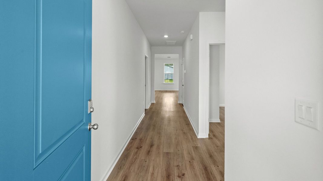 Luxury vinyl plank flooring in the main living areas and primary suite providing durability, easy maintenance, and a cohesive design