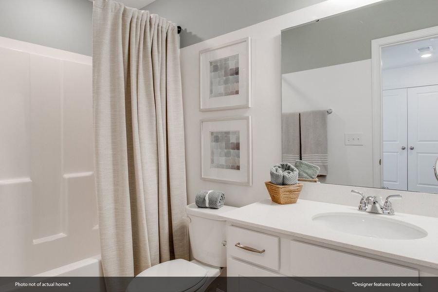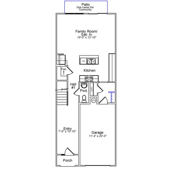 This two-story townhome includes three bedrooms and two-and-one-half bathrooms. Immediately inside the entrance is a hallway that leads you past the staircase and half bathroom and into the open concept kitchen, great room with optional fireplace, eat-in area and optional patio. An optional pet pad is available for the hallway as well. Upstairs, the primary suite features a walk-in closet and an optional boxed ceiling and dual vanities. Two secondary bedrooms and one full bathroom are also located upstairs. A laundry closet is located just outside of the secondary bedrooms for ultimate convenience. There is an alternate second floor plan that offers a second primary suite with dual walk-in closets and ensuite bathroom in lieu of the two secondary bedrooms. A one-car garage, with optional bench and cubby or organization cabinet, completes this floor plan.