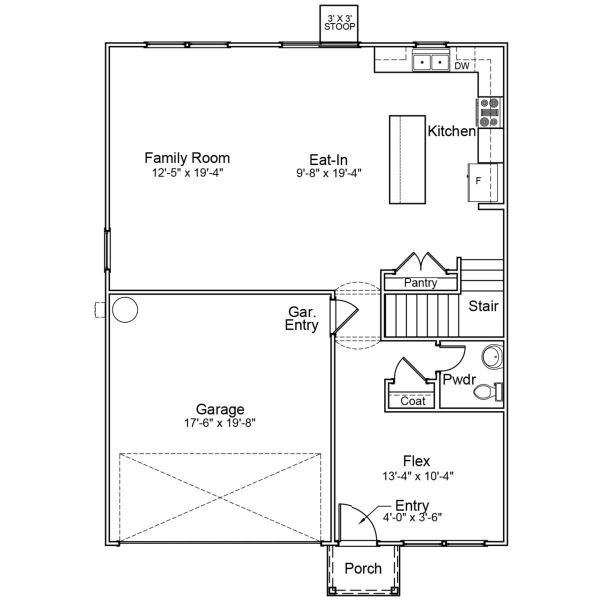 This beautiful floor plan features a welcoming entry that leads to a versatile flex space—perfect for a home office, playroom, or additional living area. Just down the hall, the open-concept living space flows seamlessly into the modern kitchen, complete with stainless steel appliances, quartz countertops, an island with bar seating, and upgraded cabinetry. Upstairs, unwind in the spacious primary suite featuring double vanities, a walk-in closet, and an oversized tile walk-in shower with a glass door. Three additional bedrooms are also located upstairs and share a conveniently located laundry room and a hall bathroom with double sinks.Enjoy outdoor living with a covered patio overlooking an ample-sized, sodded yard—perfect for relaxing or entertaining. Don’t miss your opportunity to make this home yours!