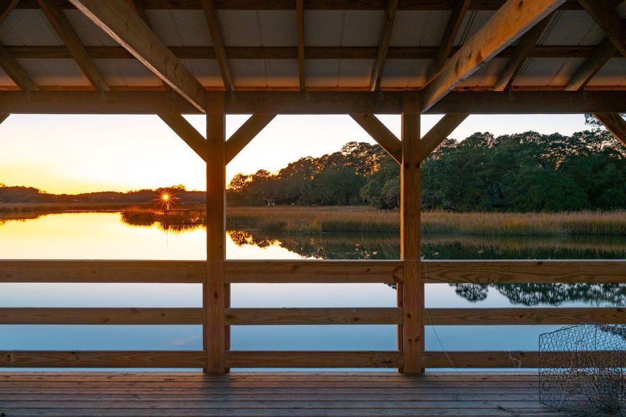 Welcome to 814 Curved Creek Court, a luxury townhome in the waterfront Creekside community on James Island. This boutique neighborhood of just 10 residences offers stunning creek and sunset views, all just minutes from Downtown Charleston and MUSC. Every Creekside home is crafted with premium finishes, & this unit features thoughtful upgrades including a custom wood vent hood, hardwood floors throughout & a shiplap accent over the built-in wet bar. A private elevator services all levels, and the ground floor offers a two-car garage plus a 290-square-foot heated and cooled flex space with a large glass slider overlooking the creek - perfect for indoor-outdoor entertaining. Homeowners will also enjoy the peace of mind of impact-resistant windows, enhancing both safety & energy efficiency.Creekside, where every home is designed with curated details and high-end finishes throughout. The interiors feature high-end hardwood floors in the main living areas and upstairs hallway, white oak stair treads, and high-quality carpet with an 8 lb pad in all bedrooms. Ceilings soar to 10 feet on the first floor and 9 feet on the second, accented by 7-inch and 5-inch baseboards, crown or cove moulding, and multiple window and door trim choices. Custom details include wood shelving in the pantry and closets, a thoughtfully designed primary closet system, and Century door hardware with several style options.