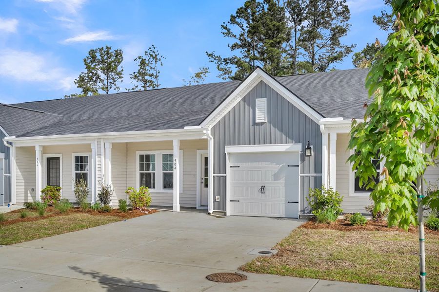 This beautifully crafted three bedroom, three bathroom villa offers an inviting blend of comfort, style, and privacy. With a downstairs study, a generous backyard, and a charming front porch, this home provides the perfect setting to enjoy the gentle Lowcountry breeze and the peaceful surroundings. The villa backs up to a dense treeline, creating a serene and secluded atmosphere in the rear outdoor space. The interior showcases Ashton Woods' stunning Artisan design collection.
