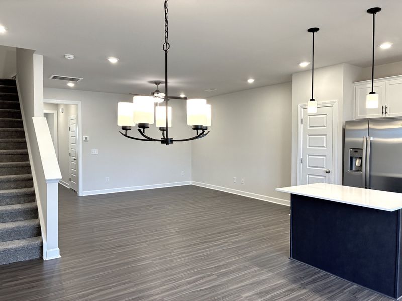 Move In Ready!...This Custom Curated Chicago style Carson plan has a spacious living room with Minka ceiling fan, LED disc lights and 2” White Blinds that leads right into a lovely open concept kitchen and dining area. Sherwin Williams City Loft interior paint keeps this home fresh and light with a hint of classic sophistication. 5” wide Polaris Cinnamon Walnut luxury vinyl plank flooring throughout 1st floor main living areas and window lined dining area let’s just the right amount of light in. Kitchen includes Fulton Sugar white cabinets, Carrara White Quartz countertops, under cabinet lighting, Matt Black modern hardware, Pendant Lights and Atlanta Carbon-stained Island which creates a move-in-ready, perfectly designed kitchen for those who love to cook and entertain at the same time. GE Stainless appliances include gas range, over-the-range microwave, dishwasher and refrigerator. This 3 bedroom, 2 ½ bath includes Shaw Midway Plaza Pebble Creek carpet in second floor bedrooms. Laundry room comes complete with hook up for washer /dryer and shelving for all your laundry accessories. Spacious owner’s bedroom with Tray Ceiling, Minka Ceiling Fan, LED disc lights and walk-in closet. Beautifully designed owner’s bath has a full walk-in shower, Fulton Sugar cabinets, Frost White Quartz top double sink vanity with white undermount sinks and Streamline Midnight resilient flooring. Been looking to create that cozy outdoor space, well now you can on your own rear covered porch. Just the right size for an outdoor loveseat, couple of chairs, outdoor rug and voila…. Your private Outdoor Oasis!