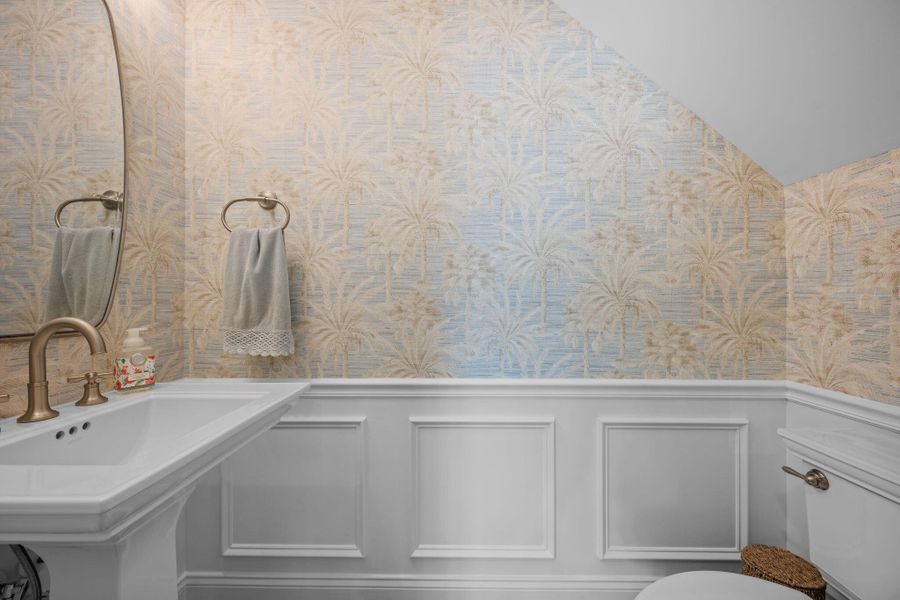 Stylishly updated secondary baths and a statement half bath with Kohler fixtures