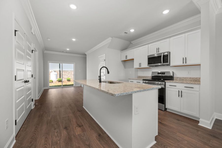 Saddlebrook Townhomes gated community features a clubhouse with full kitchen and bathrooms, pickleball court, dog park, dog wash, and so much more! Located within 2 miles of Sprouts Farmer's Market, VA Medical Center, and McKnight Park which has an indoor and outdoor pool! The Ella plan offers a 3-bedroom, 2.5 bathroom, open 2-story design. This townhome includes an upgraded cabinet package and kitchen backsplash. Features: double vanity, stand-up shower, and walk-in closet in master bath, kitchen island, pantry, undermount sinks, revwood flooring, LED lighting throughout, crown molding, ceiling fans in living and master, wood shelving in all closets and pantry, smart connect Wi-Fi thermostat, landscaping, fencing, gutters and downspouts, full community irrigation, and more! Energy Efficient Features: water heater, electric kitchen appliance package, vinyl low E-3 tilt-in windows, and more!