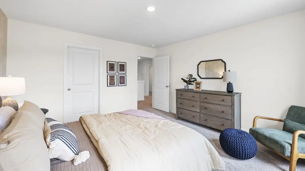 The Hanover floorplan, which is available at 2272 Chelle Drive NE, is one of D.R. Horton's most popular floorplans. The foyer opens into an open-concept main level, which features a spacious kitchen with a pantry and an island with countertop seating that overlooks a dining and living area. Additionally, the downstairs features a half bathroom and a flex room, which could be used as a formal dining space or an office. Upstairs, there is a loft that provides extra space for work and play. The primary bedroom boasts a private bathroom and walk-in closet, while three additional bedrooms share a comfortable bathroom. For convenience, there is also a laundry room upstairs. This floorplan is designed to suit any stage of life. *