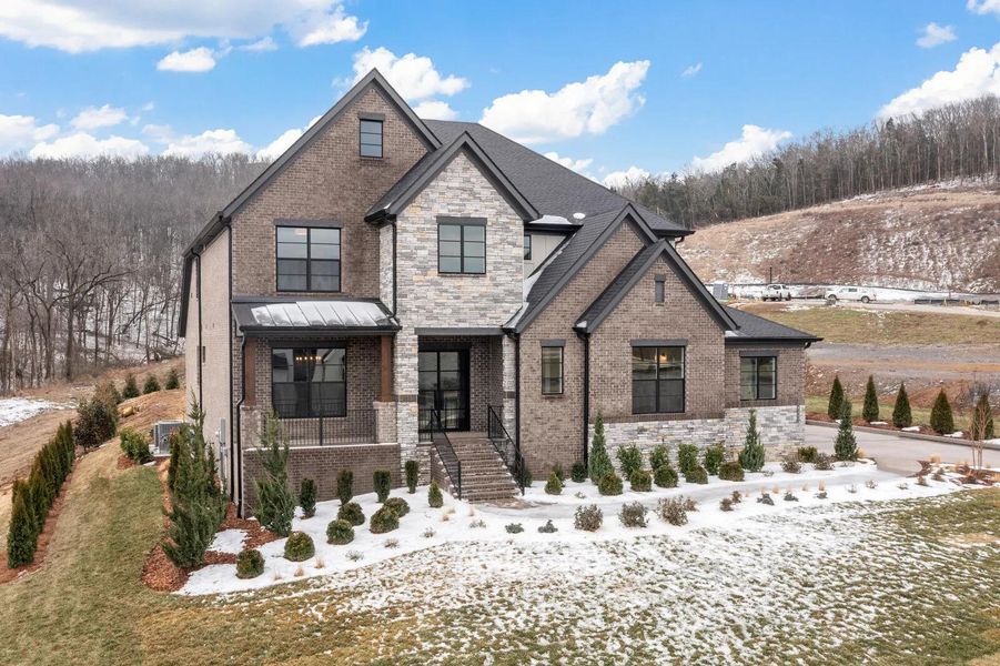 5 BR/5.5 BA, Two-Story Design in Brentwood, TN. The Belvidere offers exquisite styling, impeccable design and functional, easy living. The main level includes a luxurious primary suite with a spa bath, private home office, casual dining room and a family room with vaulted ceilings. Additional highlights include a fireplace, wine bar, and a gourmet kitchen with canopy vent hood, Jenn-Aire appliances and a large central island. Residents will love the family ready room with added cabinets and a second fridge space, as well as the vaulted outdoor living space with a fireplace. The second level includes three large private suites, a powder room, gameroom, media room, wet bar and additional storage. Our home technology package is complete with Wi-Fi signal expansion, app-driven lighting, thermostats, deadbolts and more. 360 Tours are for illustrative purposes only.