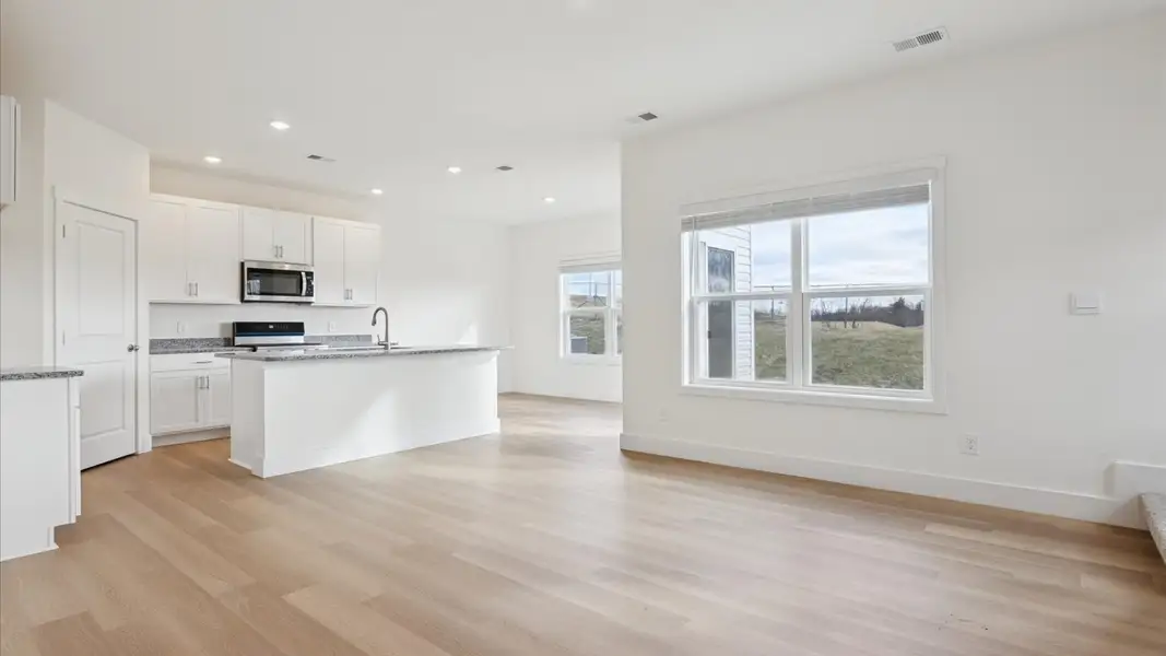 Make yourself at home at 5053 Lost Creek Drive, part of our Millstone Village community in Morristown, TN. The exterior of the home features a cream color palette with soft brown tonal brick accents. Inside, white cabinetry, gray speckle granite, and stainless steel appliances provide a polished, modern finish. This two-story home offers 1,645 square feet of well-designed living space with 3 bedrooms and 2.5 bathrooms, blending open-concept comfort with modern functionality.