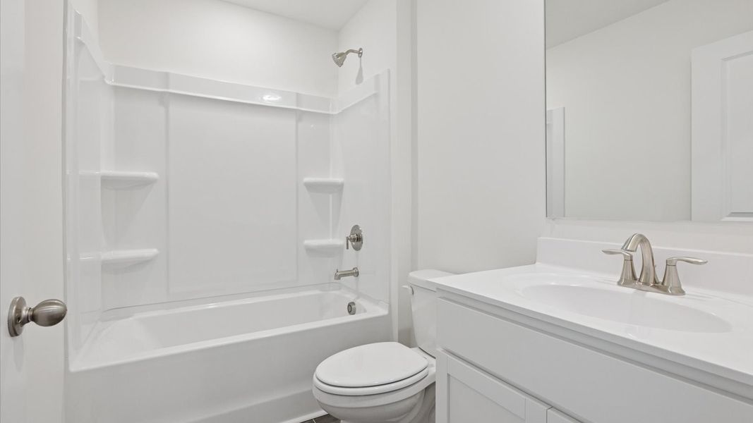 Come home to the Macon at Emory Creek. Located in a great cul-de-sac location, this home is move-in ready and available for immediate sale! Features include a gray and rust exterior palette, white cabinetry, and included stainless steel appliances for a polished, modern finish.