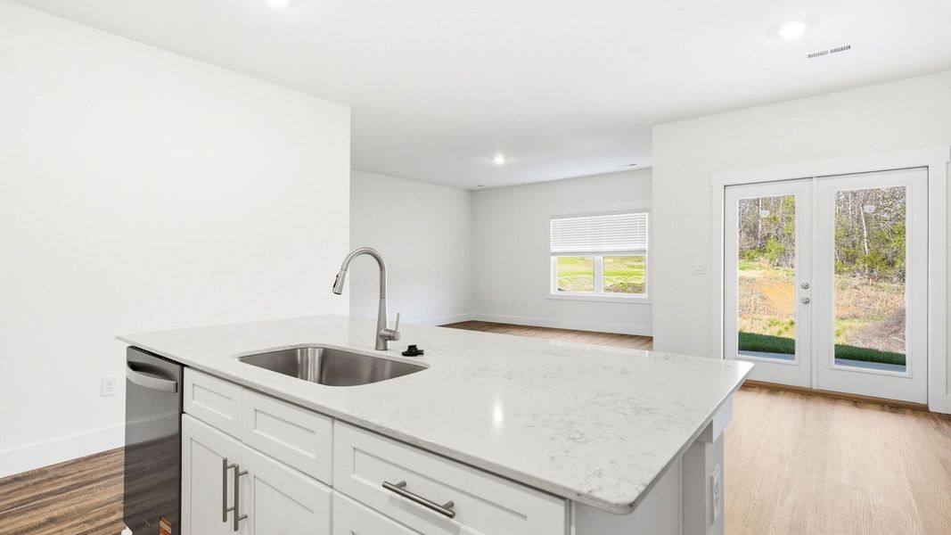 At the heart of the home, the open-concept kitchen overlooks the dining and living areas, creating an ideal space for entertaining or relaxing. A large kitchen island provides additional seating and prep space, while a roomy pantry adds convenient storage. Sliding doors open to a covered patio, extending your living space outdoors.