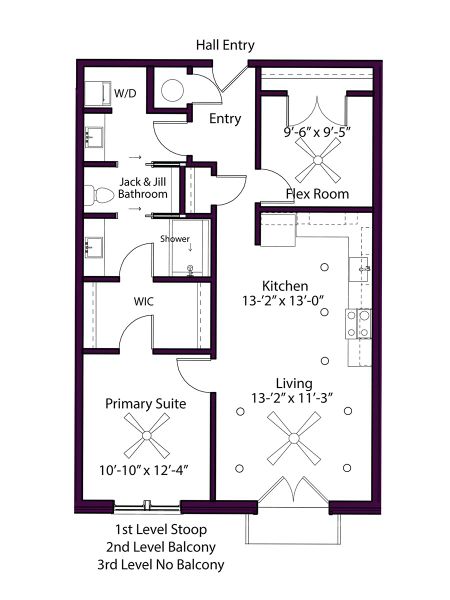 This second-level condo, accessible by elevator, features one bedroom, a Jack and Jill bathroom, and a flex room. The flat includes amenities such as 9-foot ceilings, crown molding in select rooms, 5-1/4" baseboards, and 2-1/4" casing on all doors and windows. The bathroom boasts ceramic tile flooring, while the kitchen is equipped with a Whirlpool appliance package and 42" upper cabinets with stacked crown molding and light rail trim, among other highlights. Ask our sales representative for a complete list of included features.