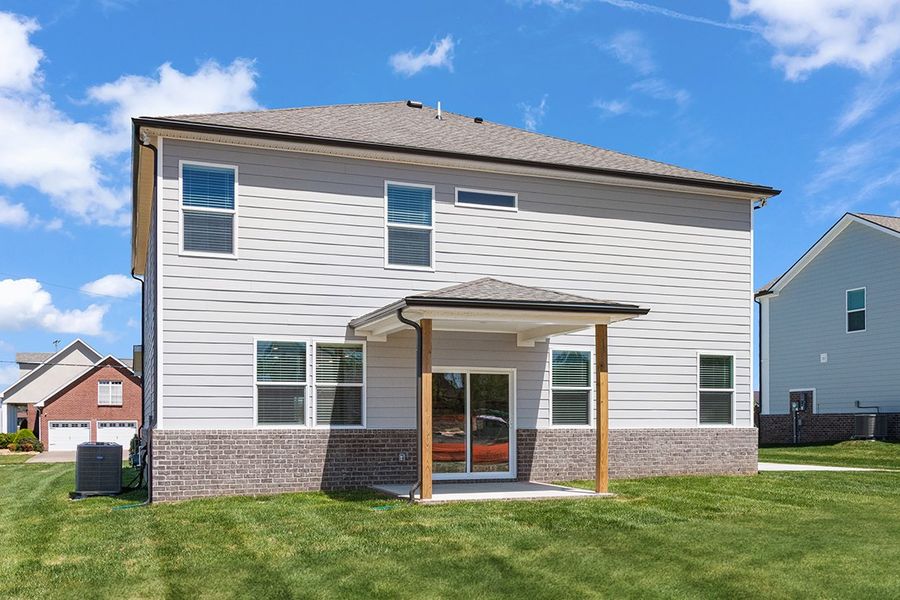 Discover exceptional flexibility in this Hudson plan at Highland Reserves, offering the rare convenience of dual owner’s suites—perfect for multigenerational living or long-term guests. The main level welcomes you with a private study featuring LVP flooring and French doors, ideal for working from home or a quiet retreat. The open-concept living area flows into a well-designed kitchen with light gray cabinets, a generous walk-in pantry, and a dining space that opens to a covered patio—great for outdoor meals or relaxed evenings.