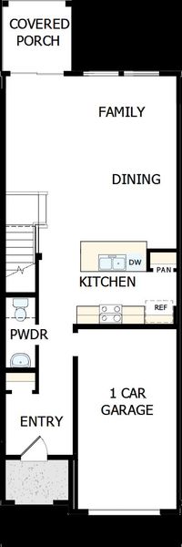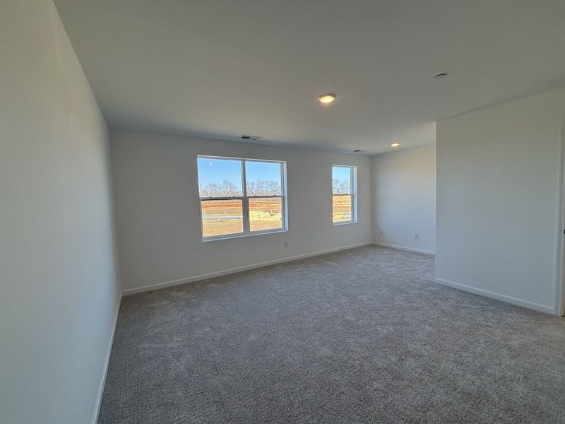 A rear staircase leads to the upper level, where you’ll find a linen closet and two generously sized secondary bedrooms. The owner’s retreat is set at the back of the home for added privacy and features a comfortable sitting area. A 1-car attached garage adds everyday convenience.