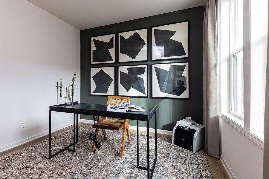 The Welkin floor plan showcases our exclusive TOP-FLOOR LIVING™, designed with premium features to elevate your living experience. Enjoy the grandeur of vaulted ceilings and the brilliance of oversized casement windows that flood the space with natural light and offer stunning city views in select units. The gourmet kitchen, equipped with an oversized island and luxurious quartz countertops, seamlessly extends into the top-floor living areas, opening onto a covered loggia perfect for outdoor entertaining. Elegant hardwood stair treads and durable hard surface flooring grace the main living spaces, creating a cohesive and stylish environment. The middle floor is dedicated to comfort, featuring two spacious bedrooms and two well-appointed baths, while the first floor provides a flex room and a convenient garage.