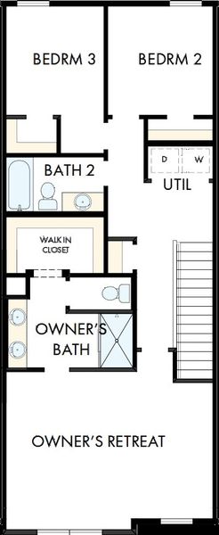 Upstairs, convenience is enhanced by a centrally located laundry area at the top of the stairs. The Owner's Retreat is situated at the front of the home and includes abundant windows and a spacious Owner's Bath designed for everyday comfort.