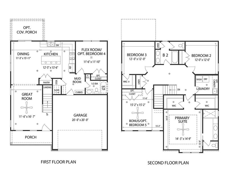 The Langley A is a charming home designed for both comfort and functionality. It boasts an open-concept living area, perfect for daily living and entertaining, along with a convenient two-car garage. The optional Bedrooms 4 and 5, the tub in Bathroom 2, and the rear porch are included!