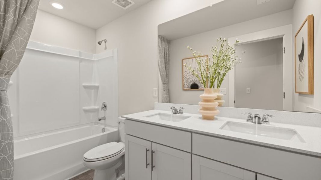 The largest floorplan available in this collection, Kingston offers an open layout among the Great Room, nook and kitchen on the first floor, plus a flex space and a fifth bedroom perfect for overnight guests. Upstairs are four more bedrooms, including the owner’s suite, and a loft for additional living space. Completing the home is a versatile two-car garage.