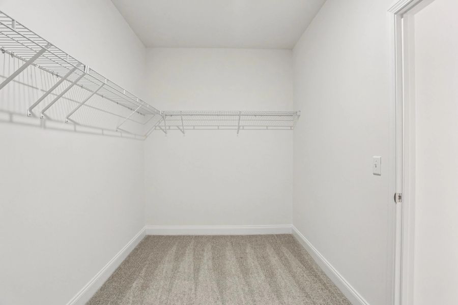 This inviting Washington plan boasts a primary bedroom on the main level, an impressive open-concept living area, and a designer-curated kitchen with a walk-in corner pantry. In the gourmet kitchen, you'll find the Milan Collection design finishes including a quartz-topped island, statement pendant lights, ample light grey cabinetry, brushed nickel hardware, white subway tile backsplash, and stainless appliances. Hosting family and friends is easy in the breakfast area adjacent to the kitchen, or on the rear covered patio off the living room. The spacious primary bedroom boasts a tray ceiling, double vanity, and oversized walk-in closet. A versatile loft on the second floor is ideal for a game room or home office, with a generous storage closet and attic access. Three secondary bedrooms are located off the loft along with a full bathroom and linen closet. Residents will enjoy a future community amenity center with a pool, cabana, playground, and walking path.