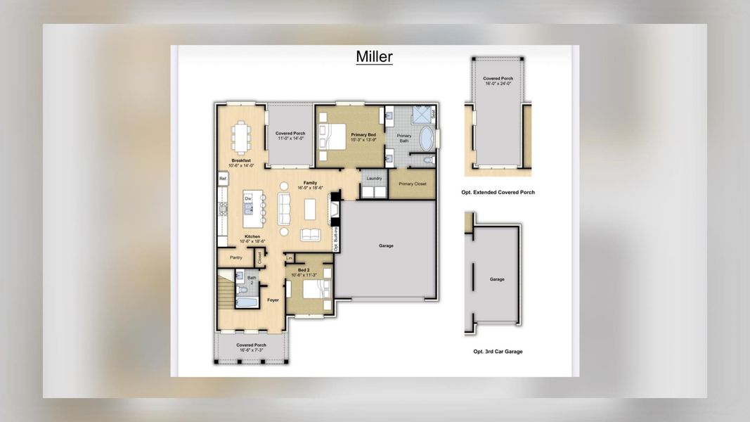 Miller A on Lot 121 4 BR 3 Bath 2,350 heated SF 8 ft interior doors downstairs, Double Ovens, 5-Burner Gas Cooktop with 2 storage drawers underneath, Soft-close cabinetry in the kitchen & primary bath, cove molding trim, all countertops are granite/quartz, kitchen islands are 100% cabinetry, Vent hood ducted to the outside, Hardwood floors throughout main living areas, hardwood treads on stairs, Rooms are pre-wired with CAT-6, Custom Wood Shelving in ALL closets