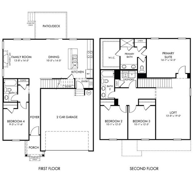 An open-concept layout means you can fix dinner at the kitchen island without missing the conversation in the great room. Use the first-floor flex space as an office or den. Upstairs, the primary suite offers dual sinks and a walk-in closet.