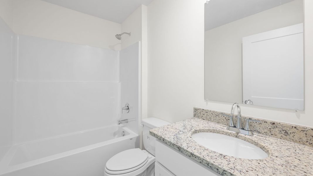Welcome to the Sullivan plan, which is available at 296 Crescent Circle. This plan comes with a one-car garage and offers 1,183 sq. ft. of living space. As you enter the home, you will be greeted by two bedrooms that share a full bathroom. Further into the home, you will find an open concept living and kitchen area, a laundry room, and a patio space. The primary suite is located at the back of the house, offering privacy. It features an en-suite bathroom and a walk-in closet. Whether you're starting a family or looking for a comfortable home to retire, the Sullivan plan is perfect for you.