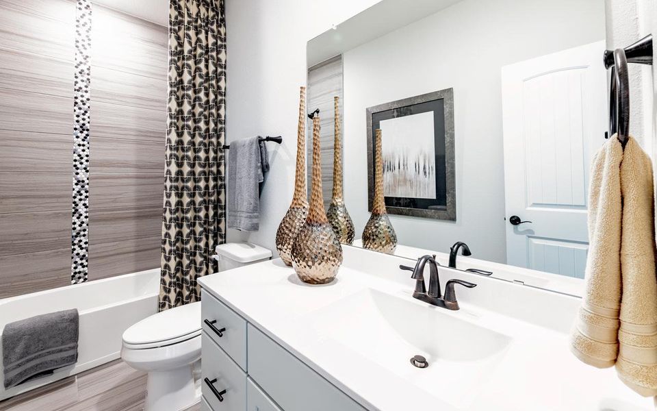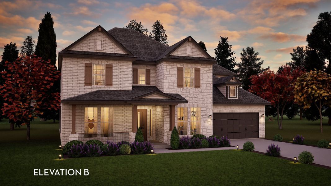 The elegant Frisco floor plan offers something for the whole family to enjoy. This five-bedroom, four-bathroom home is more than enough room for the whole family. Entering the grand foyer, you are led to the guest bedroom complete with a walk-in closet, with the full secondary bathroom residing just across the hall. On the opposite end is your sweeping staircase and a secluded study room. Take delight in the two-story family room with a stylish fireplace, and an inviting dining room and kitchen area with a large walk-in pantry included. Your kitchen also boasts desirable features like granite countertops, birch cabinets, industry-leading appliances, and designer light fixtures. Around the corner lies your walk-in utility room with entry to your two-car tandem garage. Need more space? Opt to include space for a third car or transform the tandem into a sixth bedroom with connecting bathroom for your guests! The opportunities are endless. Your covered patio is the perfect outdoor sanctuary for you and your family to relax under. When it's time for rest, retreat to your private master suite that you have the option of adding a bay window, letting optimal natural light seep through. Your amazing master bath boasts dual vanities with sinks, two walk-in closets, a luxury bath and a stand-alone shower. Talk about maximizing the space! Up the eye-catching staircase, you are greeted by a spacious game room the kids will love, as well as a media room that is perfect for a movie night at home. You will never have to wonder if there are enough space for guests since three more bedrooms reside upstairs, along with two full secondary bathrooms. This beautiful floor plan brings an open-concept feel that is convenient for anyone who walks through the doors. As soon as you enter this home, you will see for yourself the flowing layout and designer touches that make this floor plan stand out. With the amount of options available, personalize the Frisco how you've always dreamed!